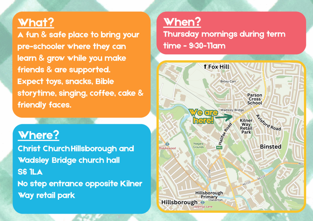 For those secondary aged and above, we think all our services are accessible and we run a youth group, which we’d love them to get involved in. See below…